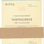 Budapest 1988. ‘Országos Kereskedelmi Hitelbank Rt.’ vagyonjegye 10.000Ft-ról, ‘MINTA’ felülbélyegzéssel, ‘II.’ sorszámmal T:UNC