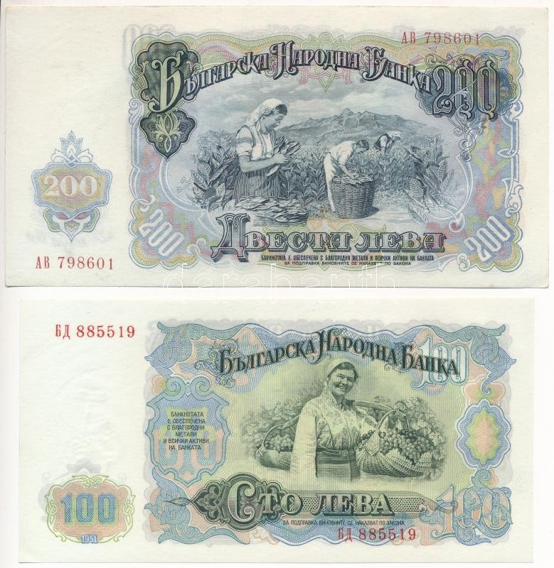 Bulgária 1951. 100L + 200L T:I,I- Bulgaria 1951. 100 Leva + 200 Leva C:UNC,AU<a href="https://www.darabanth.com/hu/gyorsarveres/436/kategoriak~Numizmatika/Kulfoldi-bankjegyek~2500001/Bulgaria-1951-100L-plus-200L-TI-I–Bulgaria-1951-100-Leva-plus-200