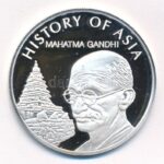 Cook-szigetek 2004. 1$ ezüstözött sárgaréz ‘Ázsia történelme – Mahatma Gandhi’ kapszulában, tanúsítvánnyal T:PP Cook Islands 2004. 1 Dollar silver plated brass ‘History of Asia – Mahatma Gandhi’ in capsule with certificate C:PP