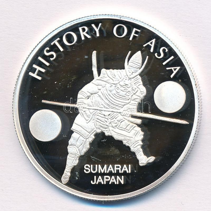 Cook-szigetek 2004. 1$ ezüstözött sárgaréz ‘Ázsia történelme – Szamurájok’ kapszulában, tanúsítvánnyal T:PP ph, karc, kis patina Cook Islands 2004. 1 Dollar silver plated brass ‘History of Asia – Samurai (Sumarai) in capsule with