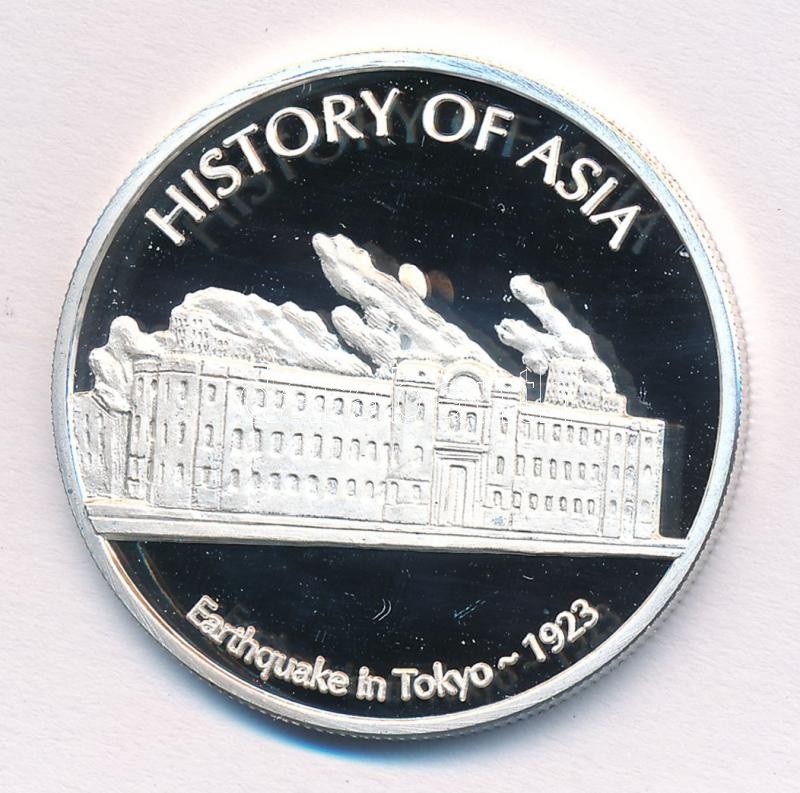 Cook-szigetek 2005. 1$ ezüstözött sárgaréz ‘Ázsia történelme-Tokiói földrengés’ kapszulában, tanúsítvánnyal T:PP kis patina Cook Islands 2005. 1 Dollar silver plated brass ‘History of Asia – Earthquake in Tokyo’ in capsule with certificate C:PP small pati