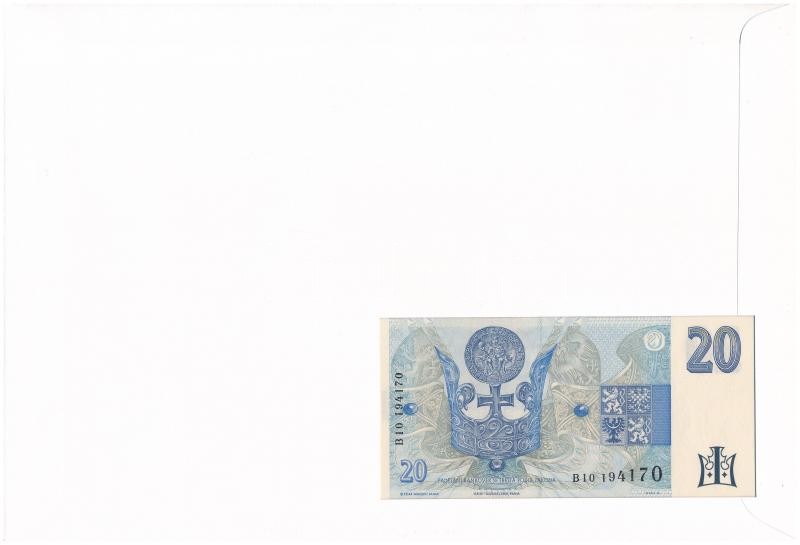 Csehország 1994. 20K felbélyegzett borítékban, bélyegzéssel T:I Czech Republic 1994. 20 Korun in envelope with stamp and cancellation C:UNC<a href="https://www.darabanth.com/hu/gyorsarveres/417/kategoriak~Numizmatika/Ermes-es-bankjegyes-boritekok~20