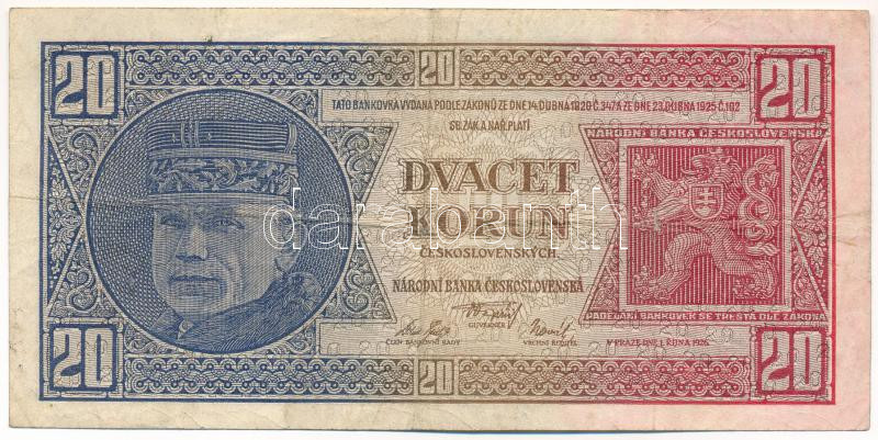 Csehszlovákia 1926. 20K ‘Fe 128482’ T:III,III- Czechoslovakia 1926. 20 Korun ‘Fe 128482’ C:F,VG Krause P#21<a href="https://www.darabanth.com/hu/gyorsarveres/433/kategoriak~Numizmatika/Kulfoldi-bankjegyek~2000008/Csehszlovakia-1926-20K-Fe-128482-TII