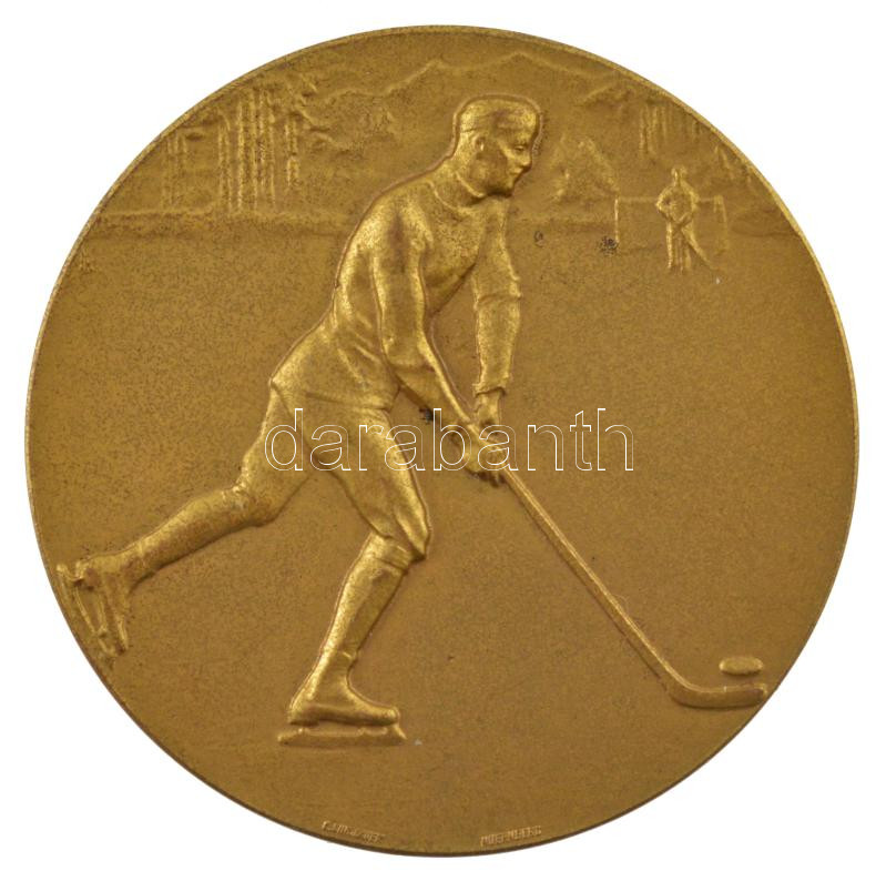 Csehszlovákia 1928. ‘Hockey Bandy – Starý Smokovec (Ótátrafüred) – 1927/8 – I.’ kétoldalas, aranyozott bronz jéglabda díjérem (40mm) T:1- Czechoslovakia 1928. ‘Hockey Bandy – Starý Smokovec – 1927/8 – I.’ two-sided, gilt bronze hockey