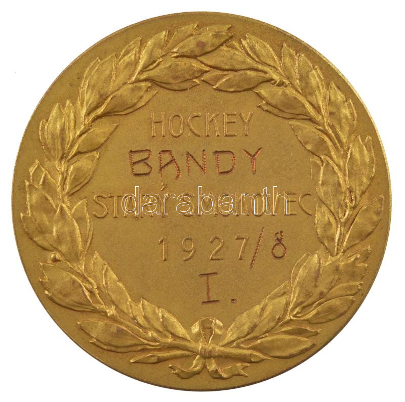 Csehszlovákia 1928. ‘Hockey Bandy – Starý Smokovec (Ótátrafüred) – 1927/8 – I.’ kétoldalas, aranyozott bronz jéglabda díjérem (40mm) T:1- Czechoslovakia 1928. ‘Hockey Bandy – Starý Smokovec – 1927/8 – I.’ two-sided, gilt bronze hockey bandy award medal (4