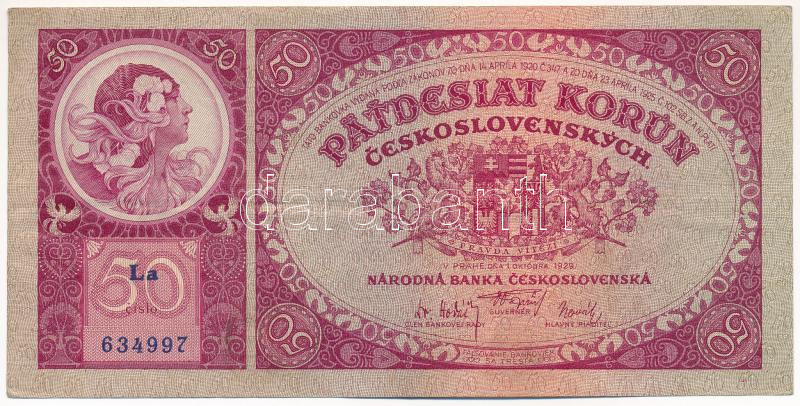 Csehszlovákia 1929. 50K ‘La 634997’ T:III szép papír Czechoslovakia 1929. 50 Korun ‘La 634997’ C:F fine paper Krause P#22