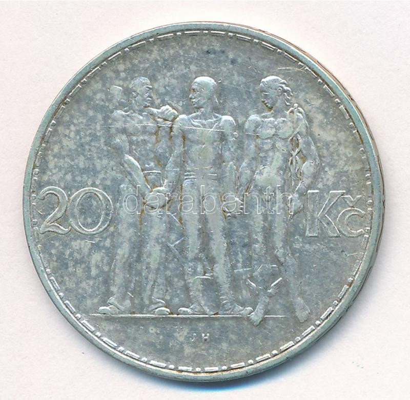Csehszlovákia 1933. 20K Ag ‘Ipar, mezőgazdaság, üzlet’ T:2 patina Czechoslovakia 1933. 20 Korun Ag ‘Industry, Agriculture, Business’ C:XF patina Krause KM#17<a href="https://www.darabanth.com/hu/gyorsarveres/409/kategoriak~Numizmatika/Kulfoldi-fem-e