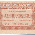 Csehszlovákia 1944. 1K ‘EM 498243’, ‘SPECIMEN (MINTA)’ perforációval T:I,I- Czechoslovakia 1944. 1 Koruna ‘EM 498243’, with ‘SPECIMEN’ perforation C:UNC,AU Krause P#45s<a href="https://www.darabanth.com/hu/gyorsarveres/433/kategoriak~Numizmatika/Kul
