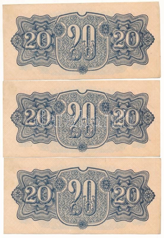 Csehszlovákia 1944. 20K (4x) sorszámkövetők „EM 395943 – EM 395946” T:XF / Czechoslovakia 1944. 20 Korun (4x) consecutive serials „EM 395943 – EM 395946” C:XF Krause P#47