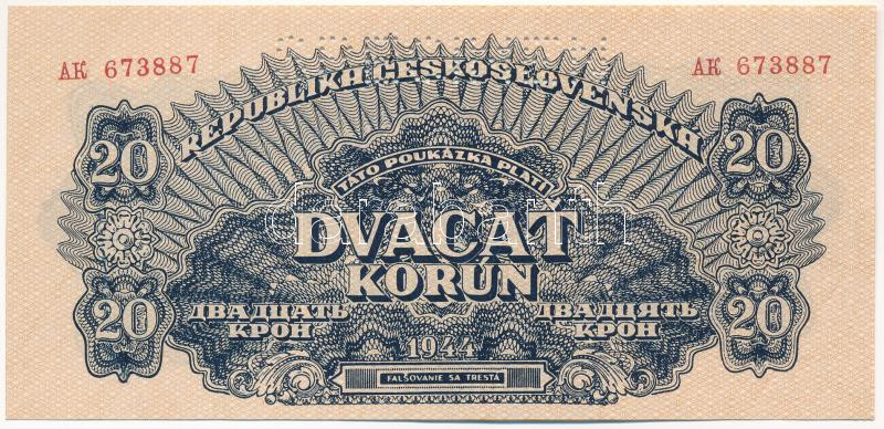 Csehszlovákia 1944. 20K ‘AK 673887’, ‘SPECIMEN (MINTA)’ perforációval T:I Czechoslovakia 1944. 20 Korun ‘AK 673887’, with ‘SPECIMEN’ perforation C:UNC Krause P#47s
