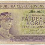Csehszlovákia 1945-1948. 50K ‘JB019622’ T:III,III- Czechoslovakia 1945-1948. 50 Korun ‘JB019622’ C:F,VG Krause P#62<a href="https://www.darabanth.com/hu/gyorsarveres/413/kategoriak~Numizmatika/Kulfoldi-bankjegyek~1500012/Csehszlovakia-1945-1948-50K-