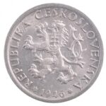 Csehszlovákia 1946. 1K Cu-Ni T:2 Czechoslovakia 1946. 1 Koruna Cu-Ni C:XF Krause KM#19<a href="https://www.darabanth.com/hu/gyorsarveres/414/kategoriak~Numizmatika/Kulfoldi-fem-es-ezustpenzek~2000013/Csehszlovakia-1946-1K-Cu-Ni-T2-Czechoslovakia-194