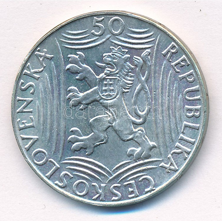 Csehszlovákia 1949. 50K Ag ‘Sztálin’ T:1- Czechoslovakia 1949. 50 Korun Ag ‘Stalin’ C:AU Krause KM#28<a href="https://www.darabanth.com/hu/gyorsarveres/409/kategoriak~Numizmatika/Kulfoldi-fem-es-ezustpenzek~2500014/Csehszlovakia-1949-50K-Ag-Sztalin-