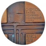 Csíkszentmihályi Róbert (1940-) 1978. ‘Chemical Építési Műanyag-Feldolgozó Gyára Barcs’ Br emlékérem kissé sérült tokban (90mm) T:1-