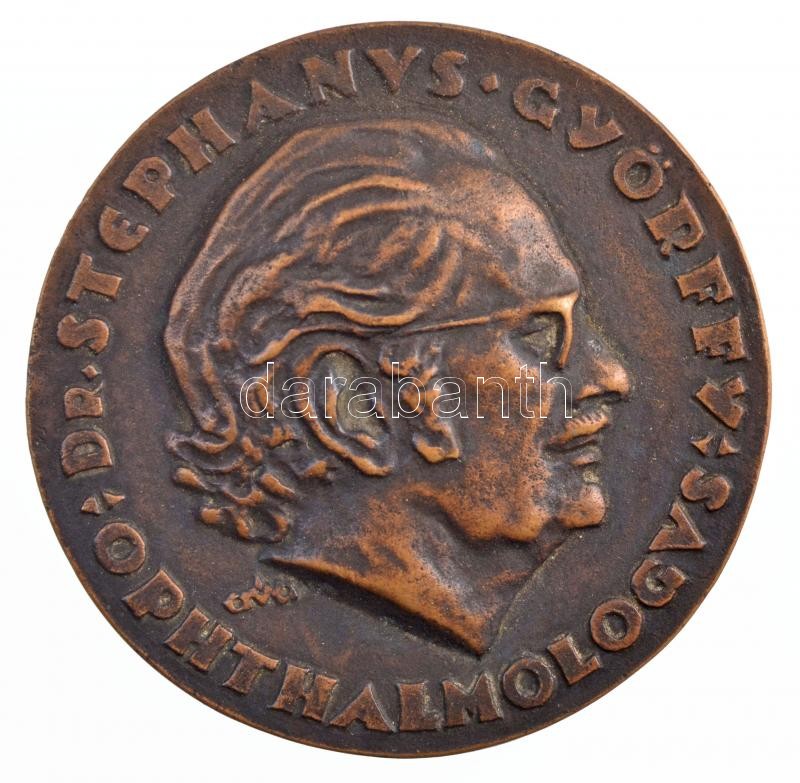 Csúcs Ferenc (1905-1999) ~1970. ‘Dr. Györffy István – Szemész (Ophthalmologus) / Annorum XXXV In Promotione Lentis Contactus’ kétoldalas Br plakett, peremen jelzett sorszámmal ’14’ (85mm) T:1- patina / Hungary ~1970. ‘Dr. István Györffy –