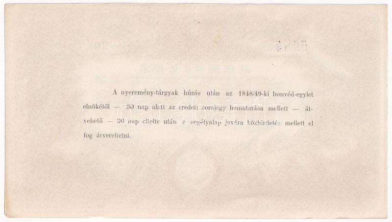 Debrecen 1889. ‘A debreczeni 1848/49-ki honvéd-egylet elaggott, munkaképtelenné vált tagjai segélyezésére’ sorsjegy 20kr értékben T:I-,II / Hungary / Debrecen 1889. ‘To help the members of the Hungarian Association of the Debrecen of 1848/49 who became ob