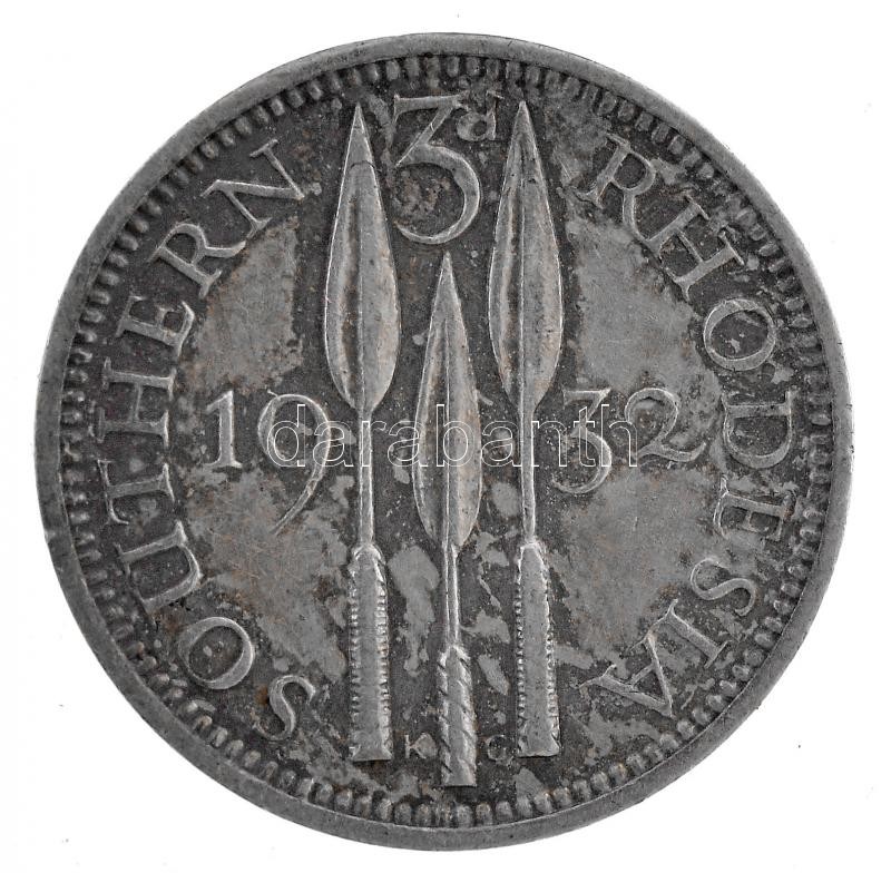 Dél-Rodézia 1932. 3p Ag ‘V. György’ T:2- Southern Rhodesia 1932. 3 Pence Ag ‘George V’ C:VF Krause KM#1<a href="https://www.darabanth.com/hu/gyorsarveres/409/kategoriak~Numizmatika/Kulfoldi-fem-es-ezustpenzek~2500014/Del-Rodezia-1932-3p-Ag-V-Gyorgy-