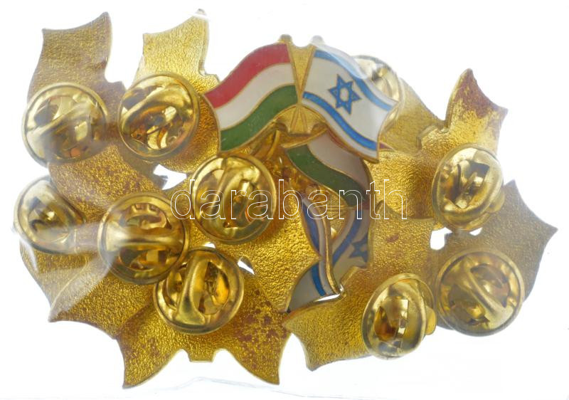 DN 14db magyarországi és izraeli zászlópárt ábrázoló, pillangó patentes jelvény (19x26mm) T:1,1-<a href="https://www.darabanth.com/hu/gyorsarveres/432/kategoriak~Numizmatika/Falerisztika-Kituntetesek-jelvenyek~1500020/DN-14db-magyarorszagi-es-izrael