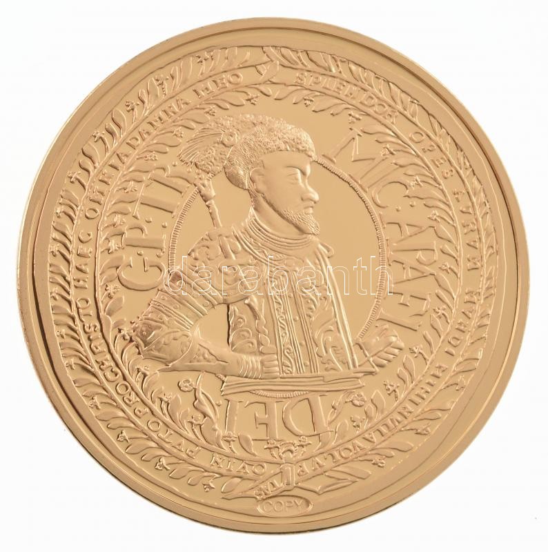 DN ‘A legértékesebb magyar érmék – Eszterházy Miklós 50 dukátjának replikája’ aranyozott Cu emlékérem, ‘COPY’ jelzéssel, tanúsítvánnyal (40mm) T:PP