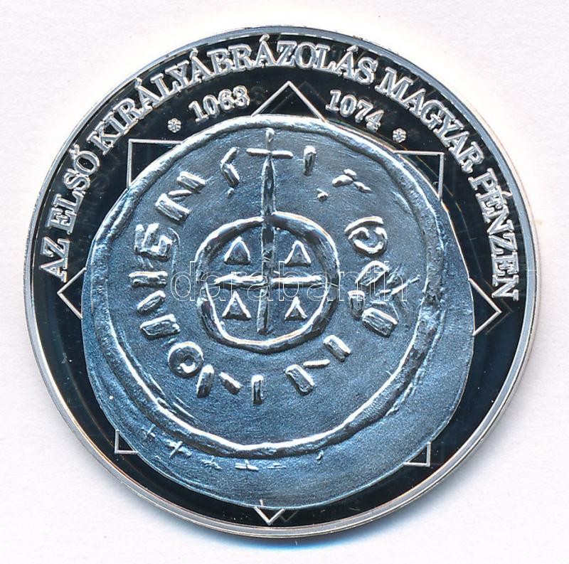 DN ‘A magyar nemzet pénzérméi – Az első királyábrázolás magyar pénzen 1063-1074’ Ag emlékérem tanúsítvánnyal (10,37g/0.999/35mm) T:PP<a href="https://www.darabanth.com/hu/gyorsarveres/409/kategoriak~Numizmatika/Modern-utanveretek-fantaziaveretek~250