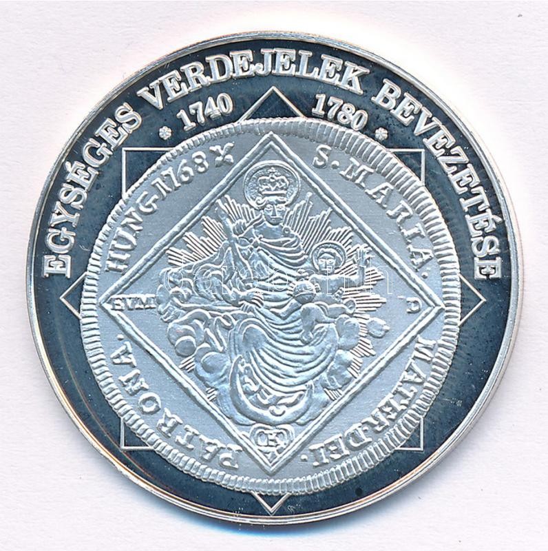 DN ‘A magyar nemzet pénzérméi – Egységes verdejelek bevezetése 1740-1780’ Ag emlékérem tanúsítvánnyal, kapszulában (10,33g/0.999/35mm) T:PP patina