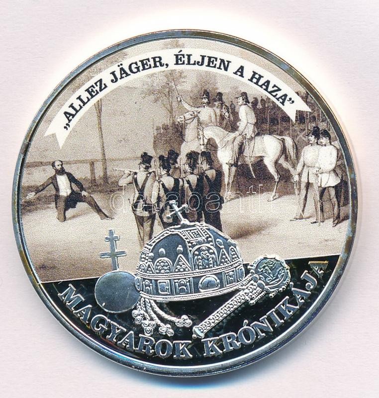 DN ‘A Magyarok Krónikája – ‘Allez Jäger, éljen a haza / 1907. 5K’ ezüstözött multicolor rézötvözet emlékérem, tanúsítvánnyal (42mm) T:PP kis patina