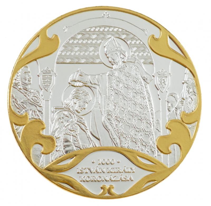 DN ‘A Szent Korona évezrede – István király koronázása’ aranyozott, ezüstözött Cu emlékérem tanúsítvánnyal (40mm) T:PP