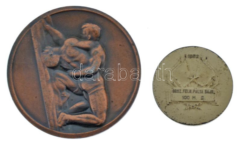 DN ‘Birkózók’ egyoldalas Zn érem (60mm) + 1952. ‘Rövidtávfutó’ ezüstözött díjérem sérült tokban (36mm) T:2