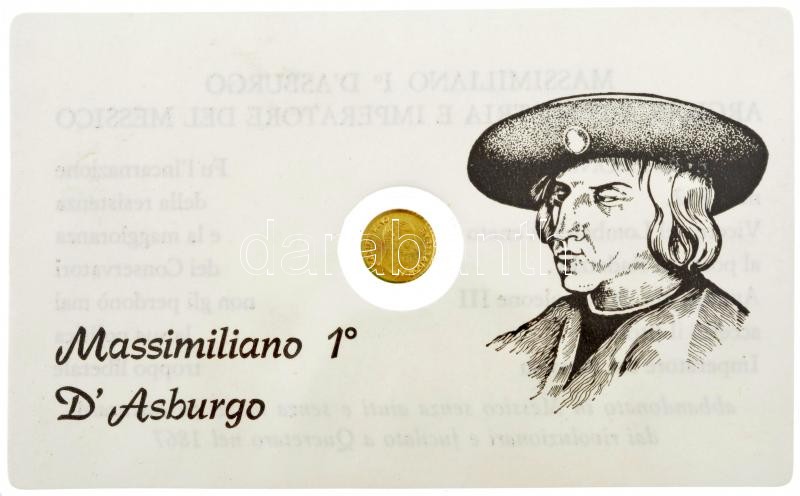 DN ‘I. Miksa’ jelzetlen modern mini Au pénz, lezárt, eredeti műanyag tokban (0.333/10mm) T:1 patina ND ‘Maximilian I’ modern mini Au coin without hallmark, in sealed plastic case (0.333/10mm) C:UNC patina<a href="https://www.darabanth.com/hu/gyorsar