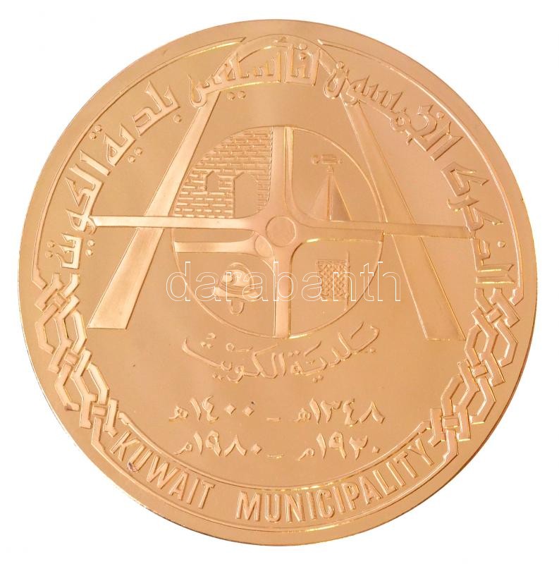 DN ‘Kuwait Municipality’ aranyozott fém emlékérem (65mm) T:PP ND ‘Kuwait Municipality’ gilded metal commemorative medal (65mm) C:PP<a href="https://www.darabanth.com/hu/gyorsarveres/424/kategoriak~Numizmatika/Kulfoldi-emlekveretek-plakettek~1500018/
