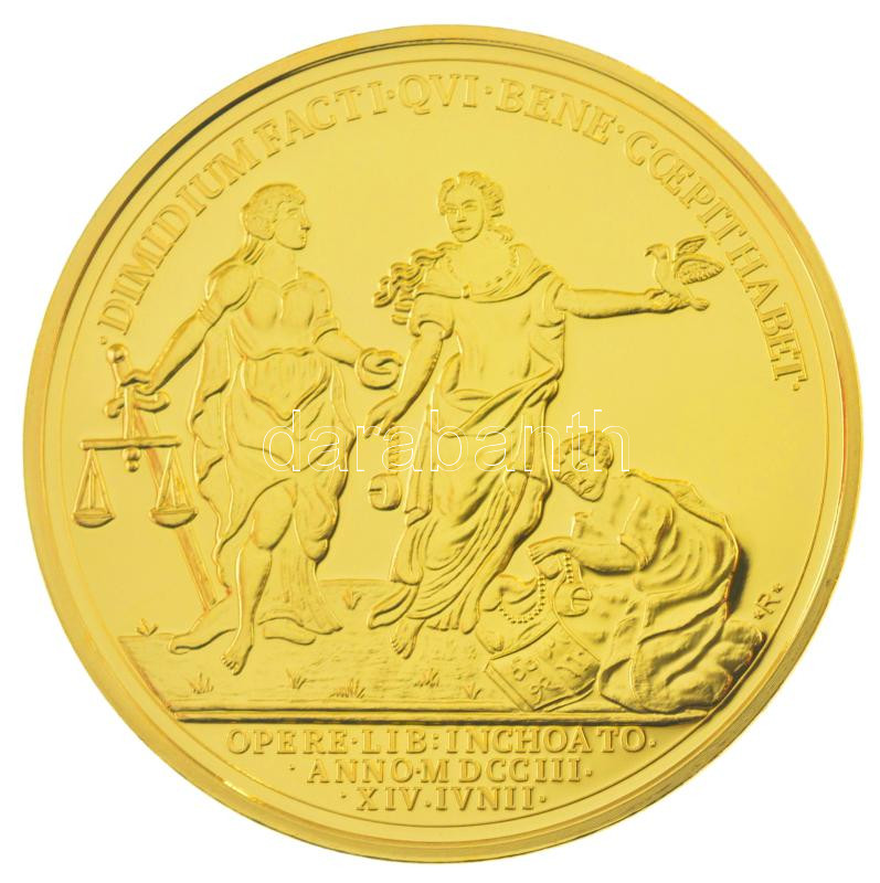 DN ‘Magyar Aranyóriások – II. Rákóczi Ferenc érem, a szabadságharc kitörésének emlékére 1703’ aranyozott Cu utánveret kapszulában, tanúsítvánnyal (46mm) T:PP<a href="https://www.darabanth.com/hu/gyorsarveres/439/kategoriak~Numizmatika/Modern-utanver