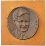 Domokos Béla (1934 – 2021) DN ‘Németh László’ bronz emlékérem fa lapra erősítve (100mm) T:1-