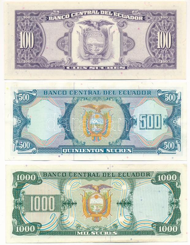 Ecuador 1988. 100S + 500S + 1000S T:I Ecuador 1988. 100 Sucres + 500 Sucres + 1000 Sucres C:UNC<a href="https://www.darabanth.com/hu/gyorsarveres/432/kategoriak~Numizmatika/Kulfoldi-bankjegyek~1500014/Ecuador-1988-100S-plus-500S-plus-1000S-TI-Ecuado