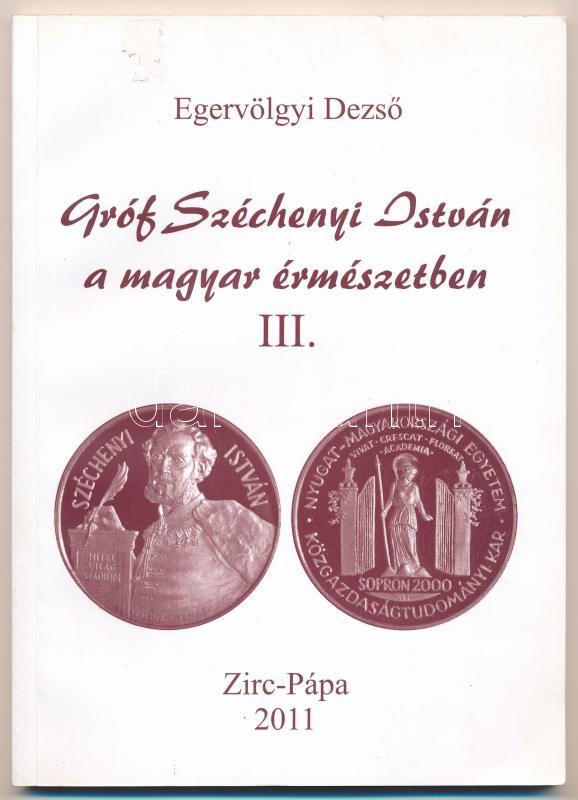 Egervölgyi Dezső: Gróf Széchenyi István a magyar érmészetben III. kötet. Zirc-Pápa, 2011., Jókai Mór Városi Könyvtár. Kiadói papírkötés, volt könyvtári példány.<a href="https://www.darabanth.com/hu/gyorsarveres/438/kategoriak~Numizmatika/Numizmatika