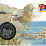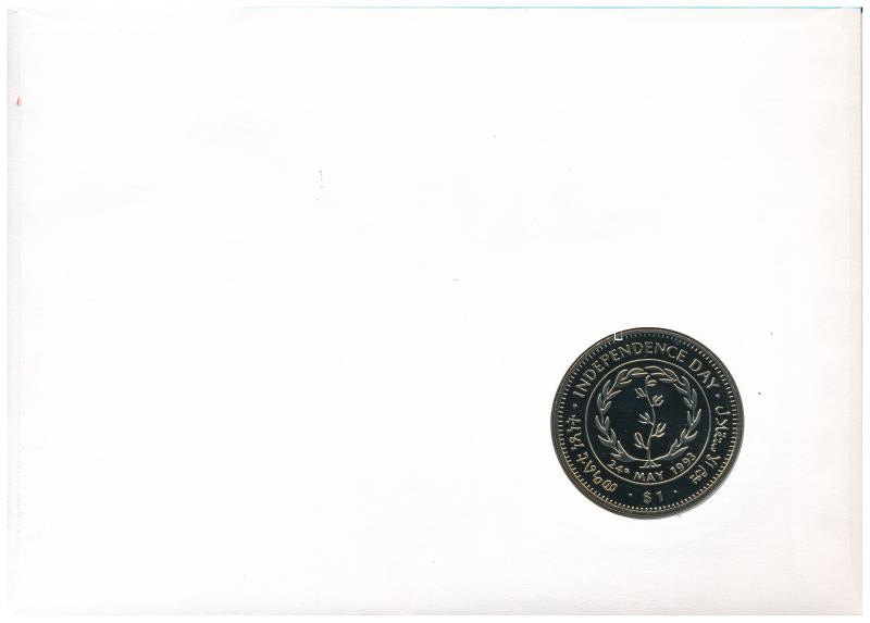 Eritrea 1993. 1$ Cu-Ni ‘Függetlenség Napja’ felbélyegzett borítékban, bélyegzéssel, német nyelvű leírással T:UNC Eritrea 1993. 1 Dollar Cu-Ni ‘Independence Day’ in envelope with stamp, cancellation, and a description in german C:UNC Krause KM#6<a hr