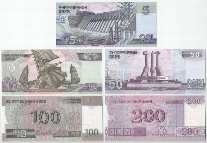 Észak-Korea 2002-2013. 5W-5000W (10xklf) MINTA felülbélyegzéssel és ‘0000000’ sorszámmal T:UNC,AU North Korea 2002-2013. 5 Won – 5000 Won (10xdiff) with ‘SPECIMEN’ overprint and ‘0000000’ serial C:UNC,AU<a href="https://www.darabanth.com/hu/gyorsarv