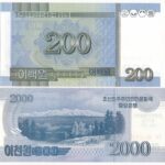 Észak-Korea 2005. 200W + 2008. 2000W ‘A KNDK 70. évfordulója’ felülbélyegzéssel T:I North Korea 2005. 200 Won + 2008. 2000 Won with ’70th anniversary of the DPRK’ overprint C:UNC Krause P#48, P#CS24<a href="https://www.darabanth.com/hu/gyorsarveres/