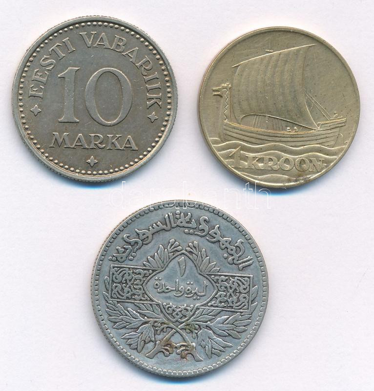Észtország 1925. 10M Cu-Ni + Észtország 1934. 1K Cu-Al + Szíria 1950. 1L Ag T:1- patina Estonia 1925. 10 Marka + Estonia 1934. 1 Kroon Cu-Al + Syria 1950. 1 Lire Ag C:AU patina
