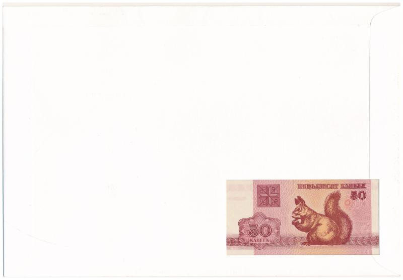 Fehéroroszország 1992. 50k felbélyegzett borítékban, bélyegzéssel T:I Belarus 1992. 50 Kopek in envelope with stamp and cancellation C:UNC<a href="https://www.darabanth.com/hu/gyorsarveres/431/kategoriak~Numizmatika/Ermes-es-bankjegyes-boritekok~15