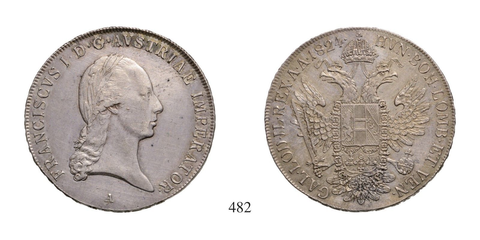 Ferenc (1792-1835), Tallér /Taler/ , Ag , 1824, Bécs /Wien/ , Av: FRANCISCVS I•D•G•AVSTRIAE IMPERATOR• alul verdejegy /unten Mzz./ A , Rv: HVN•BOH•LOMB•ET VEN•-GAL•LOD•IL•REX•A•A•1824• , 28,15 g, J.: 190, Mz.A.: 319, Frühwald 175., vorzüglich