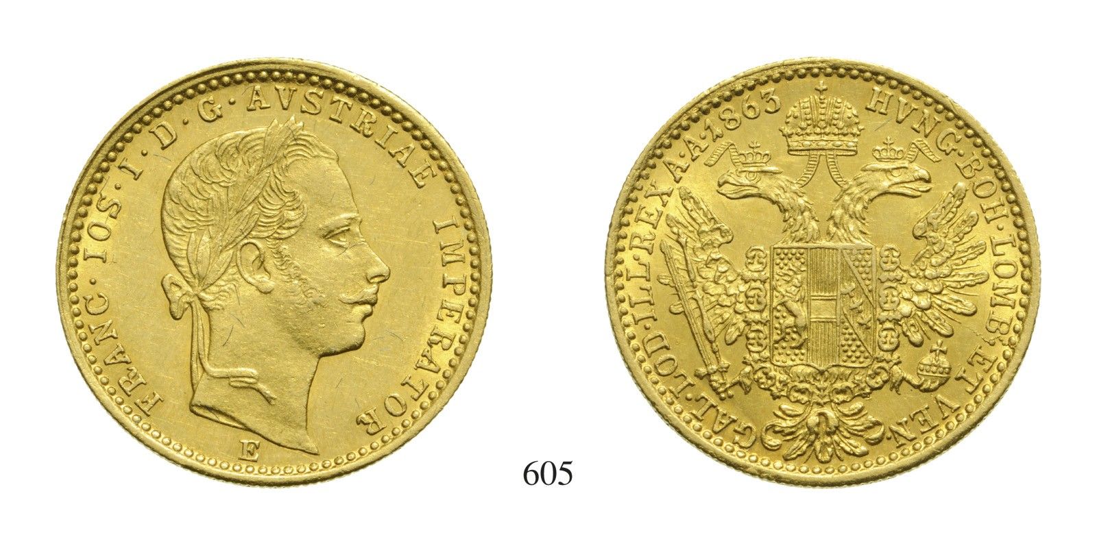 Ferenc József (1848-1916), Dukat , Au , 1863, Gyulafehérvár /Karlsburg/ , Av: FRANC•IOS•I•D•G•AVSTRIAE IMPERATOR alul verdejegy /unten Mzz./ E , Rv: HVNG•BOH•LOMB• ET VEN• – GAL• LOD• ILL•REX A•A•1863 , 3,49 g, Huszár: 2102, Unger II.: 1434b, J: 330, Früh