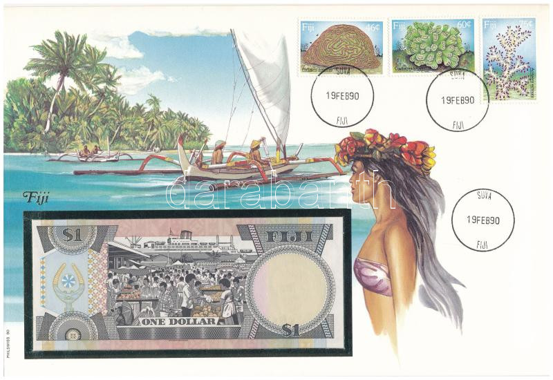 Fidzsi-szigetek 1987. 1$ borítékban, alkalmi bélyeggel és bélyegzéssel T:I Fiji 1987. 1 Dollar in envelope with stamps and cancellations C:UNC<a href="https://www.darabanth.com/hu/gyorsarveres/431/kategoriak~Numizmatika/Ermes-es-bankjegyes-boriteko