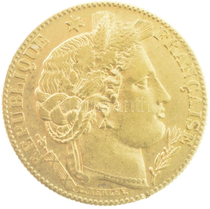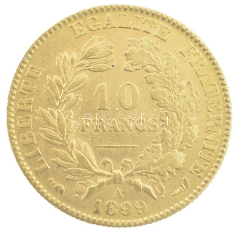 Franciaország 1899A 10Fr Au (3,23g/0.900) T:2 France 1899A 10 Francs Au (3,23g/0.900) C:XF Krause KM#830<a href="https://www.darabanth.com/hu/gyorsarveres/432/kategoriak~Numizmatika/Magyar-es-kulfoldi-aranypenzek-es-emlekveretek~1500013/Franciaorsza