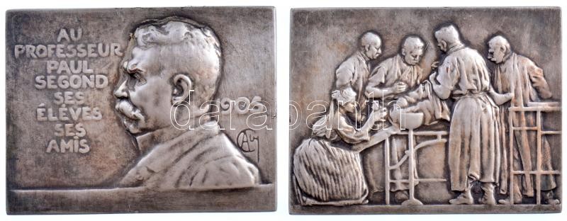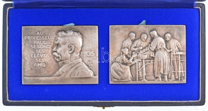 Franciaország 1905. ‘Paul Segond professzornak, tanítványaitól és barátaitól’ ezüstözött bronz emlékérempár tokban. Szign.: CA (59,70g/62x80mm és 73,40g/62x81mm) T:2 patina / France 1905. ‘For professor Paul Segond from his students
