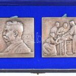 Franciaország 1905. ‘Paul Segond professzornak, tanítványaitól és barátaitól’ ezüstözött bronz emlékérempár tokban. Szign.: CA (59,70g/62x80mm és 73,40g/62x81mm) T:2 patina / France 1905. ‘For professor Paul Segond from his students and friends’ silver pl