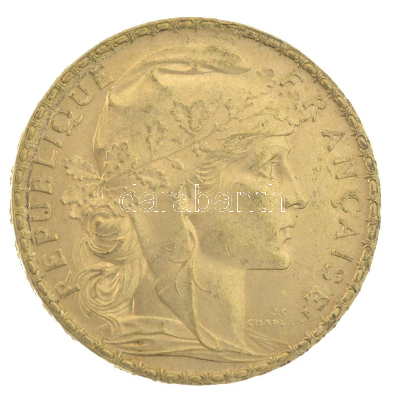 Franciaország 1907. 20Fr Au (6,48g/0.900) T:AU / France 1907. 20 Francs Au (6,48g/0.900) C:AU Krause KM#857<a href="https://www.darabanth.com/hu/nagyaukcio/40/kategoriak~Numizmatika/Magyar-es-kulfoldi-aranypenzek-es-emlekveretek~16445/Franciaorszag-