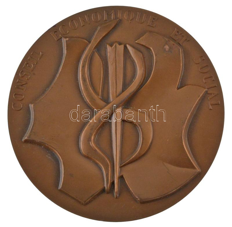 Franciaország 1987. ‘Gazdasági és Szociális Tanács / Francia Köztársaság’ peremén jelzett bronz emlékérem. Szign.: Chauvenot (70mm) T:1-,2 France 1987. ‘Conseil Économique et Social / République Française’ bronze medallion, marked on