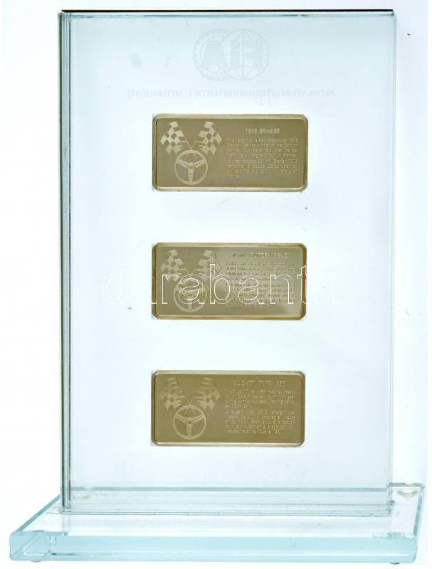 Franciaország DN ‘FIA (Nemzetközi Automobil Szövetség) – Brasier, Blitzen-Benz, Bugatti Type 35B’ díszvendégeknek járó, 3db-os jelzett Ag emlékérem szett plexi keretben (~30g/25x52mm/db) T:PP, 1- (PP) ujjlenyomatos France ND ‘FIA (Federation International
