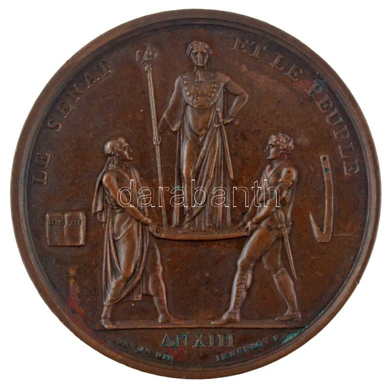 Franciaország / Első Császárság 1804. ‘Napóleon császár / A szenátus és a nép’ kétoldalas bronz emlékérem, Szign.:Bertrand Andrieu, Romain Jeuffroy (40mm) T:2 kis patina France / First Empire 1804. ‘Emperor Napoleon / The Senate and