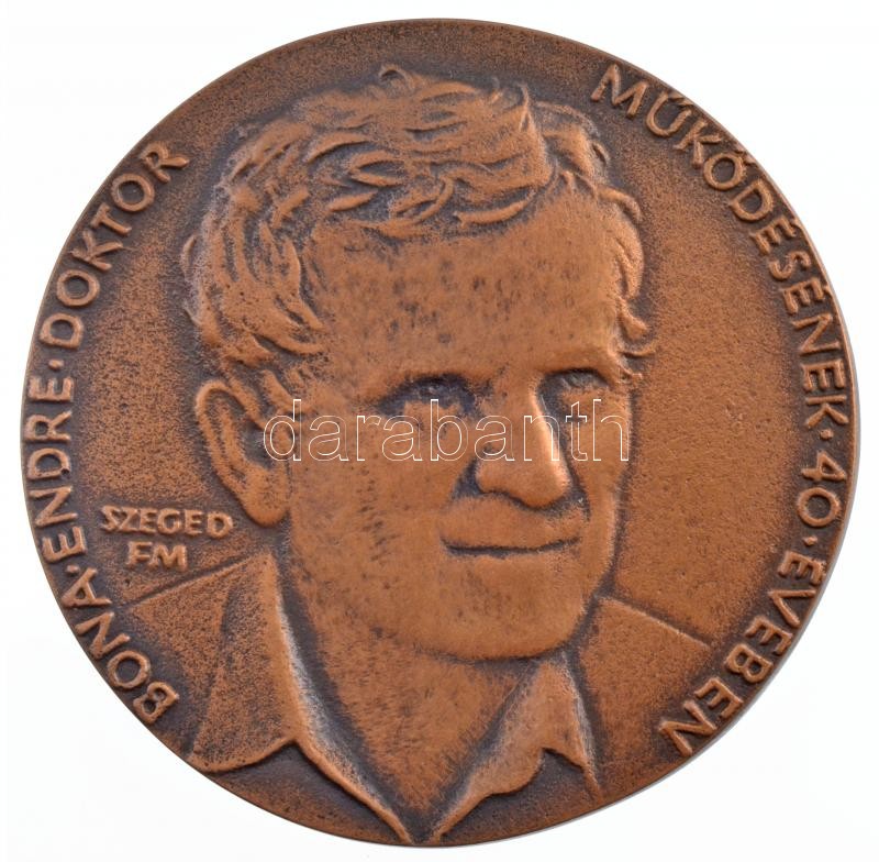 Fritz Mihály (1947-) ~1980. ‘Doktor Bóna Endre működésének 40. évében – Szeged / Nehéz a becsület fényében elbotlani’ kétoldalas Br emlékérem (75mm) T:2 kis ph / Hungary ~1980. ‘In the 40th year of Dr. Endre Bóna’s operation – Szeged / It is hard to stum